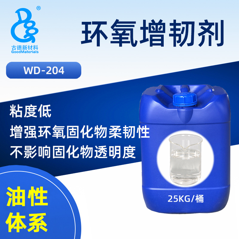 粘度低,添加WD-401能數倍提高環氧樹脂斷裂韌性(GIC),能保持較高的耐熱性,可使粘接強度大幅度上升,疲勞強度大幅度提高,低溫抗開裂能力、抗冷熱沖擊能力顯著提高。